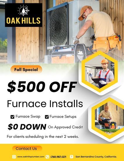 When winter hits the High Desert and your home’s furnace can’t keep up, you need a trusted team who understands your climate, budget, and comfort needs. Oak Hills Plumbing, Heating & Air Inc. offers professional furnace installation and replacement solutions tailored for Oak Hills and surrounding communities.